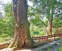Mieszko Oak is the thickest oak in the Silesian Voivodeship. Its age is estimated to be over 500 years, though according to local legends, it could be as old as 750 years.[2] The trunk of the tree is hollow (empty), as the locals say, which is said to indicate the advanced age of the specimen.[2]