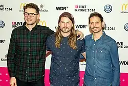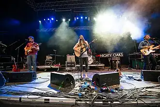 Mighty Oaks are an indie/folk rock trio made up of Ian Hooper (US), Claudio Donzelli (Italy) and Craig Saunders (UK). They formed in 2010 and are based in Berlin.[2] According to Allmusic, the group releases "tight, three-part harmonies and effusive, largely acoustic-driven folk anthems."[3] In early 2014 they released their first LP, Howl, on Universal Records.[3] The album peaked at No. 10 on the Official German charts with several singles charting as well. They have since released a second LP, Dreamers (2017), and an EP, Storm (2017). On the 7th of February 2020, they released their third full-length album, All Things Go.