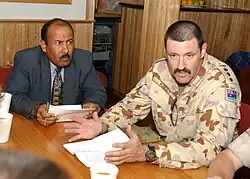 Colonel Mike Kelly (right) during his deployment to Iraq in 2003.