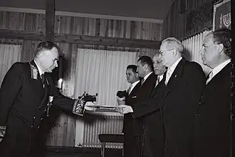 Mikhail Bodrov presents his credentials to President Yitzhak Ben-Zvi at Beit HaNassi, Jerusalem
