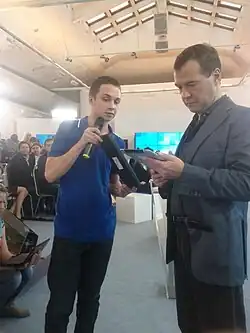 Mikhail Samarsky and D. A. Medved'yev during a meeting with Russian bloggers.