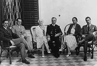 The Horthy family in 1936: István Horthy, Gyula Károlyi, Magdolna and Miklós Horthy, Paulette Horthy, Miklós Horthy Jr.
