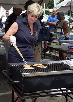 The first Milford Oyster Festival was held on the Milford Green and Fowler Field on 23 August 1975.[8] Major founders of the oysterfest include Diano Nytko, first chairperson of the Milford Chamber of Commerce,[9][10] and Robert N. Cooke, for whom the Bob Cooke Skin Cancer Foundation was named.[11]