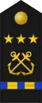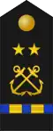 | Almirante | Vicealmirante | Contralmirante | Comodoro | Capitán de navío | Capitán de fragata | Capitán de corbeta | Teniente de navío | Teniente de fragata | Teniente de corbeta | |||||||||||||||