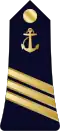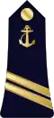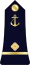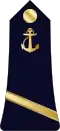 | Amiral | Vice-amiral d'escadre | Vice-amiral | Contre-amiral | Capitaine de vaisseau | Capitaine de frégate | Capitaine de corvette | Lieutenant de vaisseau | Enseigne de vaisseau de 1re classe | Enseigne de vaisseau de 2e classe | |||||||||||||||