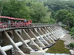 The creek passes through the middle of the Erie Zoo, where several bridges span the creek. One of the bridges is designed to act as a "drift catcher", preventing large debris from entering the tube further downstream.[5] The drift catcher is also used by the zoo's train to cross over Mill Creek.[5]