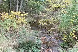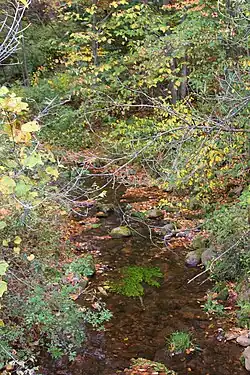 A total of 24 macroinvertebrate taxa inhabit Mill Creek.[3] The taxa Hydropsychidae, Nigronia, and Philopotamidae are common in the creek. Macroinvertebrate taxa that are less common, but still present, include Ephemerellidae, Gomphidae, Heptageniidae, Limnephilidae, Perlidae, Perlodidae, Pteronarcyidae, and Sialidae. Rare macroinvertebrate taxa in the creek include Baetidae, Cambaridae, Dytiscidae, Ephemeridae, Isonychiidae, Leptophlebiidae, Limnephilidae, and several others.[3]