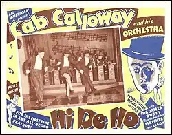 The Miller Brothers and Lois are known to have appeared in one film, Cab Calloway's Hi De Ho from 1947. The first section of their act in the film is prime class-act precision. The two men, in tailcoats and top hats, swivel around Lois, who wears the same getup except for a skirt and Cuban heels. She does what the boys do and throws in high kicks or walkovers as garnish. Across the buttes and valleys of five narrow platforms a few feet high that spell out M-I-L-L-E-R, Lois and one of the guys range sideways and backward, spreading a brisk and daring routine that would be impressive enough on the ground. The final section introduces loftier platforms, one a board almost tall enough to reach Lois's shoulders, and the tempo races even faster. The brothers break out their craziest wings, but the climax comes with Lois, elevated like a woman walking the plank, doing trenches and rotating like a stunt biplane.[1]