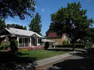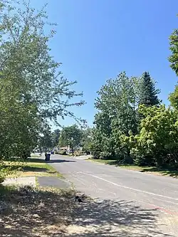 Argonne Road is the main street through Millwood, connecting the city with the rest of the Spokane area via highways to the south. As the main street, it is home to the commercial section of the historic district, which runs along the west side of Argonne and wraps around for the first block of Euclid Avenue. The rest of the district is single-family residential in nature.[5]