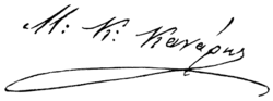 At the same time he was involved in politics. He was elected a Member of Parliament for Syros and later Member of Parliament for Nea Psara. He became Minister for Naval Affairs three times, for three days in the Benizelos Roufos government (just before the outbreak of the Iouniana of 1864, where his brother Aristeidis was killed), in 1868–1869 and in 1879.[1][5] In 1895 and after the disastrous 1897 war, King George I proposed him as Prime Minister, but Kanaris did not accept, as he demanded as a precondition for his appointment the convocation of a Revisionary Parliament to review the Greek Constitution of 1864.[1]