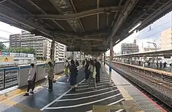 The station opened on July 1, 1961 on the Keihin-Tōhoku Line.[2] The Musashino Line platforms opened on April 1, 1973 when passenger services on the line started. A widely reported incident occurred at the station about 9:15 a.m. on July 22, 2013, when a woman fell into the gap between a train and the edge of the platform. About 40 bystanders helped station staff push against the side of the train so that the woman could be safely extricated. A member of the station staff began pushing the train after the woman fell into the gap and bystanders quickly joined in to help with the rescue effort. The woman was not seriously injured.[3]