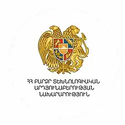 The Ministry of High-Tech Industry (Armenian: Բարձր տեխնոլոգիական արդյունաբերության նախարարություն) is a ministry of the Armenian government, headquartered in Yerevan. The Ministry of High-Tech Industry is a central body of executive authority that develops and implements the Armenian government's policy in the spheres of communication, information, information technology and information security, postal services, licensing, granting of permits and military industry.[1] The current Minister of High-Tech Industry is Mkhitar Hayrapetyan.