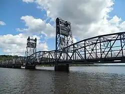 The Minnesota Legislature passed a bill in 2014 designating MN 36 in North St. Paul as the Officer Richard Crittenden Sr. Memorial Highway, honoring a North St. Paul officer killed in the line of duty in 2009.[18] Prior to August 2017, upon reaching the St. Croix River, MN 36 merged with, and ran concurrently with MN 95 north into downtown Stillwater. At Chestnut St., MN 36 turned east and crossed the St. Croix River on the historic Stillwater Lift Bridge.[19] The Stillwater Bridge had to be closed frequently for repairs,[20] and at over 80 years old was deemed obsolete and vulnerable to failure.[21][22]