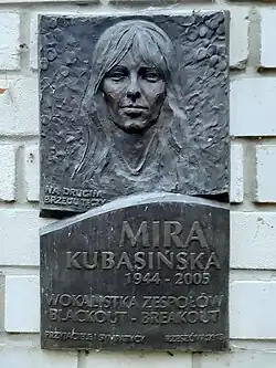 Mira Kubasińska (8 September 1944 – 25 October 2005) was a Polish blues rock singer during the big beat (an alternative term for rock and roll) period of the Polish music scene in the 1960s and 1970s.[1] She was a member of the bands Blackout, Breakout, and After Blues.