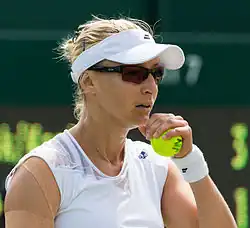 Mirjana Lučić-Baroni (née Lučić; Croatian pronunciation: [mǐrjana lûtʃitɕ, - lǔː-, - lûː-];[2][3][4] born 9 March 1982) is a Croatian former professional tennis player. She enjoyed a meteoric rise on the WTA Tour in the late 1990s, during which she set various "youngest-ever" records. She captured the women's doubles title at the 1998 Australian Open when she was 15 years old, partnered with Martina Hingis. She also won the first ever professional tournament she entered, the 1997 Croatian Ladies Open, and defended it the following year at age 16, making her the youngest player in history to successfully defend a title.[5] She then reached the semifinals of the 1999 Wimbledon Championships, beating world No. 4 Monica Seles and eighth seed Nathalie Tauziat, the previous year's finalist, before she lost to Steffi Graf in three sets.[1]