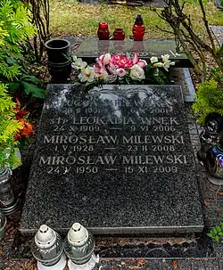 He died on February 23, 2008 in Warsaw, and was buried in a family grave at the Northern Communal Cemetery in Wólka Węglowa[7]