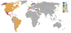 Contestants from thirty-three countries and territories were selected to compete in the pageant. The age requirement in this edition was still from eighteen to twenty-eight, where women who were married and had children could also participate.[4]