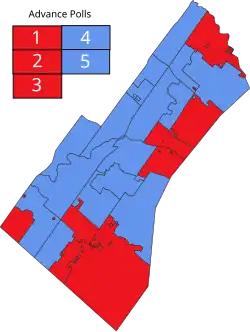 Winning party in each polling division of Mississauga—Lakeshore at the 2022 Ontario general election