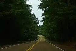 Wooded scenery along Mississippi Highway 32 in rural Yalobusha County
