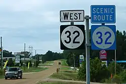 Shield for MS 32 Scenic along its concurrency (overlap) with MS 32 in Oakland