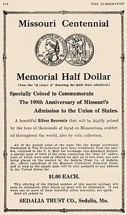 19. ^ "The Missouri Centennial Half Dollar a Popular Coin". The Numismatist: 484–485. October 1921.