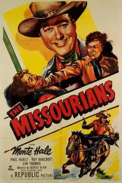 The Missourians is a 1950 American Western film directed by George Blair and written by Arthur E. Orloff. The film stars Monte Hale, Paul Hurst, Roy Barcroft, Lyn Thomas, Howard Negley and Scott Elliott. The film was released as a Fawcett Movie Comic#7 on November 25, 1950, by Republic Pictures.[1][2][3]