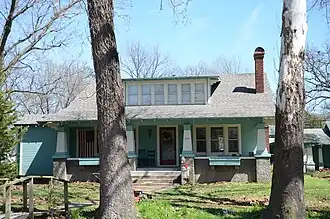 The Mitchell House is a historic house at 115 North Nelson in Gentry, Arkansas. Built in 1927, it is the finest local example of Craftsman architecture. It is a 1+12-story wood-frame structure, with a side-gable roof that extends over the front porch. The roof's wide eaves and porch area have exposed rafter ends and large brackets typical of the style, and there are wide shed roof dormers at the front and rear.[2]