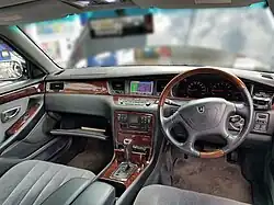 The Proudia came in three specifications labeled A, B, or C. The A and B types were powered by Mitsubishi's 6G74 3,497 cc GDi V6 engine producing 177 kW (237 hp; 241 PS) at 5,500 rpm and 343 N⋅m (253 lb⋅ft) of torque at 2,500 rpm, while the type C specification was powered by the 8A80 4,498 cc GDi V8 engine producing 206 kW (276 hp; 280 PS) at 5,000 rpm and 412 N⋅m (304 lb⋅ft) of torque at 4,000 rpm.[1] The car was equipped with several features like CCD cameras to monitor adjacent lanes and behind the car, and a lidar activated adaptive cruise control.[2] It used MacPherson struts for the front suspension and a multi-link suspension for the rear wheels.