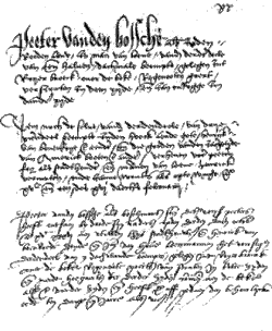 ![]() Examples of Dutch notarial act from 1526 to 1536. | |