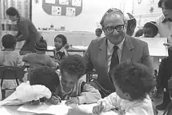 In July 1990, 75.3% national literacy rate was reported to the government with national campaign.[27][28] The rate of expansion of both primary and secondary education was higher than to the previous Haile Selassie regime. Enrollment (including those in private schools) increased from 224,934 in 1959–1960 to 1,042,900 in 1974–1975 or the rate of about 15% per annum. During the period of 1975–1979, enrollment increased from 1,042,900 to 3,926,700 or at the rate of about 12% annually.[1]