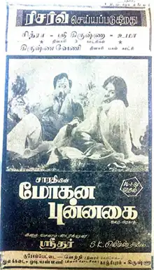 Mohana Punnagai (transl. The seductive smile) is a 1981 Indian Tamil-language romance film written and directed by Sridhar. The film stars Sivaji Ganesan, Geetha, Jayabharathi, Padmapriya, Anuradha and Anandhi. It was released on 14 January 1981.[1] The film was an average grosser in Tamil Nadu, but performed better in Sri Lanka.[2]
