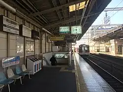 The station consists two opposed elevated side platforms, with an effective platform length of six cars.The ticket gates and concourse are on the first floor, and there is only one ticket gate. The station is staffed.[4][5]