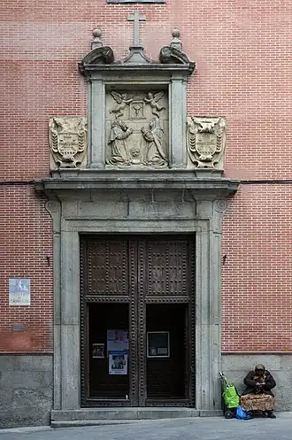 The Monastery of Corpus Christi las Carboneras (Spanish: Monasterio del Corpus Christi las Carboneras) is a monastery of a female community of the Order of Saint Jerome located in Madrid, Spain at the Plaza del Conde de Miranda. It was founded in 1607 by the widowed countess of Castellar and Hieronymite nun Beatriz Ramírez de Mendoza (1556-1626).[1] It is named after a painting of the Virgin of the Immaculate Conception that was found in a coalyard (Spanish: carbonería).[2] The complex was built by the master builder Miguel de Soria, a pupil of Juan Gómez de Mora, in the first quarter of the 17th century. It was declared Bien de Interés Cultural in 1981.[3] The monastery is vending sweet pastries (Spanish: dulces).[2][4]