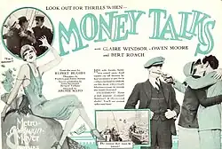 Money Talks is a 1926 American silent comedy film directed by Archie Mayo. The film stars Claire Windsor, Bert Roach, Owen Moore and Ned Sparks. It is written by Jessie Burns and Bernard Vorhaus, based on the story by Rupert Hughes. The film is considered partially lost.[1]