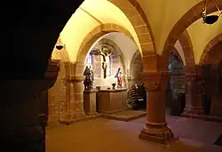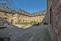 It was founded about 690 by Adalrich, Duke of Alsace for his daughter, Odile, who was its first abbess.[2] Saint Eugénie d'Alsace (died 735) was its second abbess. On the eastern slope of the Mont Sainte-Odile the first abbess built a hospice called Niedermünster or Nieder-Hohenburg, which afterwards became a house for ladies of nobility until it was destroyed by lightning in 1572.