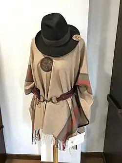 An example of a top-part female attire consisting of a poncho and a fedora hat