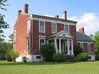 Montezuma, also referred to as Spring Hill, is a historic home located near Norwood, Nelson County, Virginia. It was erected around 1790, and is a notable example of Piedmont Virginia Federal architecture. It has a two-story main block with a 1+12-story wing, laid in Flemish bond brick, with a Roman Revival dwarf portico. It is associated with the Cabell family, who settled in Nelson County in the second quarter of the 18th century. Because of his friendship with the Cabell family, the use of the Roman Doric order, certain exterior details and the floor plan, Thomas Jefferson is often associated with the design of the home.[3]