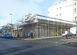 By the 1960s the chapel was too large for its remaining congregation, and the land west of West Street was proposed for redevelopment by Brighton Corporation.[16][17] Plans were drawn up in 1960, a public inquiry took place in 1962, and the compulsory purchase of buildings covering 15 acres (6.1 ha) was agreed in January 1963.[17] Among them was the Tabernacle, which was demolished two years later; its registration was formally cancelled in November of that year.[9] A new church hall for St Paul's Church, named Wagner Hall after its long-serving vicar Arthur Wagner, was built on the site of the Tabernacle.[18]