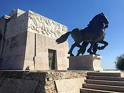 The Monument to the Fallen Italians in Africa (Monumento ai Caduti italiani d'Africa) is a Fascist era monument, dedicated to the Italians who died during the Ethiopian War (1935-1936), and assembled only in the 1960s on the seashore in Siracusa, region of Sicily, Italy. The monument, sculpted and designed by Romano Romanelli, was initially meant to be shipped in 1940 and assembled in Addis Ababa in Ethiopia; however, the Second World War prevented the transport, and led to its installation more than two decades later at this site, chosen because Syracuse had been a center for embarcation of troops for the African wars.