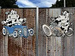 Thanks to its rural setting, Mooball is a popular tourist destination due to the cow themed decorations throughout the town; these decorations include black and white cow prints painted on electricity poles throughout.[1] Other cow themed attractions available include the Moo Moo Roadhouse, which features cow style markings and artwork.[8][9]