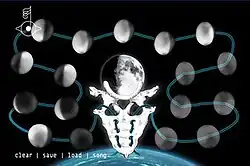 The 'Moon' app for iPad and iPhone was developed by 18-year-old programmer Max Weisel, and is a musical sequencer which features 17 moons (representing each pulse of a time bar in the song). By changing the position of each moon, one changes the note it produces, thus forming a new melody each time which can be played with Björk's voice. The app also allows one to play the original song.[4]