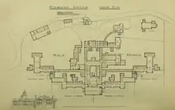 Work on Plymouth Asylum was commenced in 1888, to a design by James Hine and Odgers of Plymouth using a stepped corridor layout. The asylum was designed to cater for 200 patients, although in anticipation of future extension the administrative portion of the building was adapted for a larger number. It was erected on a commanding site in the parish of Ugborough, on the borders of Dartmoor. Stone for the building was quarried on the estate, and the masonry dressings are of limestone, brick, Portland and Bath stone. The chapel is in the Early Englishstyle. The contracted price for the asylum was £34,514; Pethick Brothers, of Plymouth acted as contractors. The Mayor, Alderman Waring, Chairman of the Plymouth Justices, laid the foundation stone in 1888.[1] The hospital was opened as the Plymouth Borough Asylum in October 1891.[2]