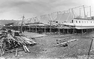 ![]() Moran sternwheelers under construction.