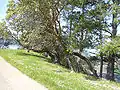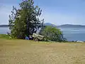 Moresby Island has an elevation of 148 meters (485 feet 6 inches) above sea level at its highest point,[1] and has a total land area of 3.22 sq. miles.[2] The island is 3.7 km (2.3 mi) in length, and is 2.2 km (1.4 mi) across.[3]: 9 The island was first settled in 1863. It was named for Rear Admiral Fairfax Moresby, who was the naval commander-in-chief of the Pacific Station of the Royal Navy between 1850 and 1853, as was Fairfax Point at the island's southern tip[4]: 342 and the other Moresby Island in Haida Gwaii. During the 1880s, land was cleared by Capt. H. J. Robertson, then owner, in order to plant fruit trees.[5] In 1940, the island again changed hands.[6]