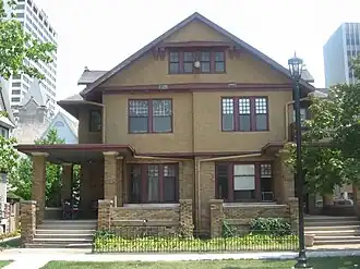 Morey House is a historic apartment house located at South Bend, St. Joseph County, Indiana. It was built in 1909, and is a large 2+1⁄2-story, building with a brick first story and stuccoed upper stories in an American Craftsman vernacular style. It has an irregular plan and features two small square porches with balconies on the corners of the front facade.[2]: 22