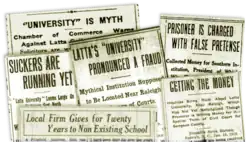 - ^ a b c d ""UNIVERSITY" IS A MYTH: Chamber of Commerce Warns Against Latta College Solicitors". The Philadelphia Inquirer. September 8, 1918. p. 22. Retrieved May 24, 2024.