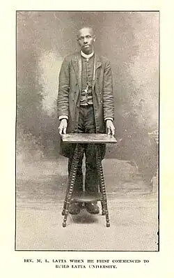 Latta founded Latta University in Oberlin Village, an antebellum enclave established by free Blacks in West Raleigh.[4][5] Latta University received its official incorporation on February 15, 1894,[6] following the acquisition of land in Oberlin Village and fundraising efforts to finance its construction, a process spanning three years.[7] Latta traveled across the North, making speeches and fundraising for the university .[8][9][10]