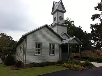 Morrisville Christian Church, also known as Morrisville Church of Christ, is a historic church located at Morrisville, Wake County, North Carolina. It was built in 1872–1873, and is a one-story, three-bay by four bay, vernacular front-gable church. It has a projecting front gable and prominent three-stage corner bell tower, which contains the main entrance, protected by a front-gabled portico. The church retains its original wood flooring, wall and ceiling finishes, and floor plan. The United Church of Christ sold the building to the Town of Morrisville in 1976 and it houses a community center.[2]