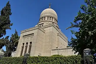 The Mostafa Kamel Museum is a museum in Cairo.[1] It was officially opened in April 1956. Before that, it was a mausoleum containing the remains of the two leaders, Mustafa Kamel and Muhammad Farid.[1] It also houses the remains of the intellectuals and activists, Abd al-Rahman al-Rafei and Fathi Radwan.[1] The museum is built in the style of the Islamic mausoleum dome and includes two halls containing some of the belongings of the leader Mustafa Kamel represented in his books and letters in his handwriting, and some pictures of his friends and relatives, as well as some of his personal belongings of clothes, dining utensils, and his office room.[1] The museum also includes oil paintings depicting the Denshway incident.[2][3] On February 8, 2001, the museum reopened after being restored.[1]