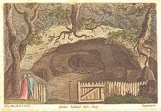 The cave has long been associated with the legend of "Mother Ludlam" who was, supposedly, a white witch who lived in the cave. The earliest versions of the legend, such as that recorded by John Aubrey in 1673 in his Natural History and Antiquities of Surrey, make no mention of a witch and it is likely that the story was originally associated with fairies.[9]